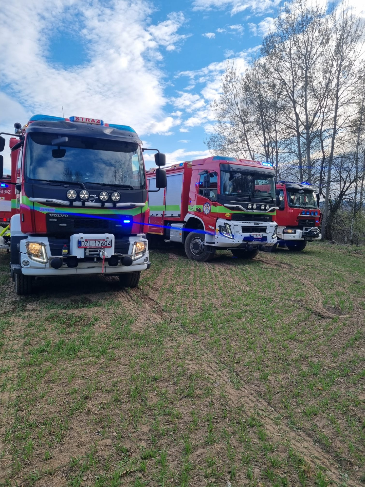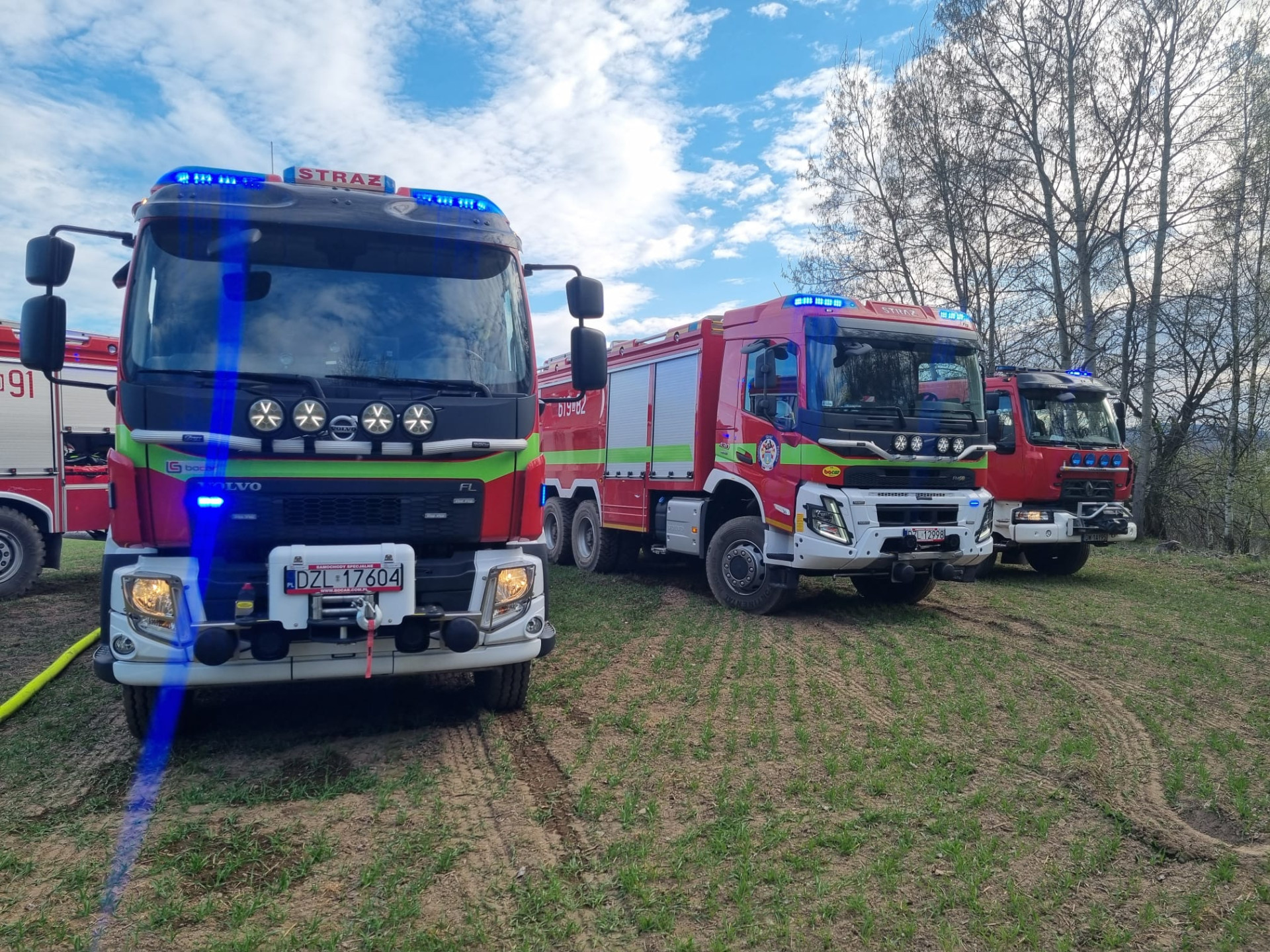 Na zdjęciach z akcji widać nowoczesne pojazdy ratowniczo-gaśnicze, którymi dysponują jednostki z naszego regionu. Wozy marki Volvo wyposażone są w specjalistyczny sprzęt pozwalający na prowadzenie skutecznych działań nawet w trudnym terenie. Tego typu inwestycje w sprzęt są niezbędne dla zapewnienia bezpieczeństwa mieszkańcom powiatu złotoryjskiego.